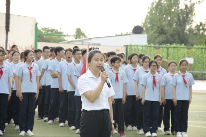 图为少先队大队辅导员翟静主持少先队员纳新活动