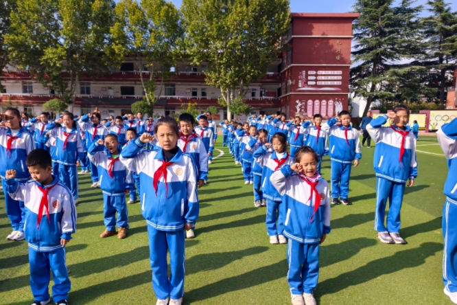 火红的队旗高高飘扬,指引我们前进的方向;鲜艳的红领巾系满希望,带领我们扬帆远航。2025年10月13日,为了庆祝建队日成立76周年,我校以“强国复兴有我 争做新时代好少年”进行新队员入队仪式。