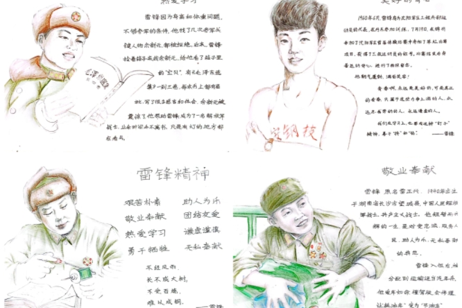 少先队员们用手中的笔和纸,把对雷锋的敬意和对志愿服务的热爱表达得淋漓尽致,更传递着队员们对雷锋的敬仰之情。