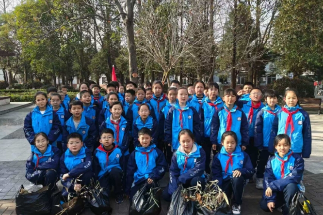 “锋”尚行动中,孩子们化身“绿色小卫士”。3月5日下午,礼泉分校联合社区开展志愿服务活动,带领四到六年级学生及八年级团员外出在社区以实际行动传播雷锋精神。