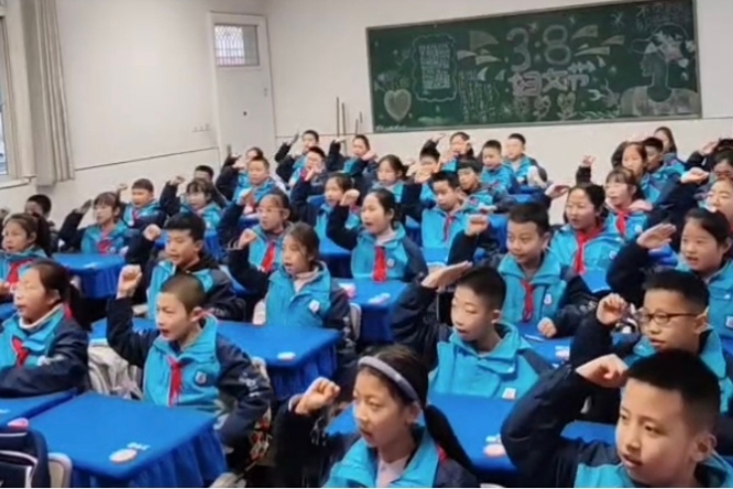 图为五年级少先队员唱赞歌
